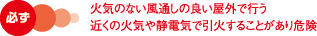 ・火気のない風通しの良い屋外で作業する